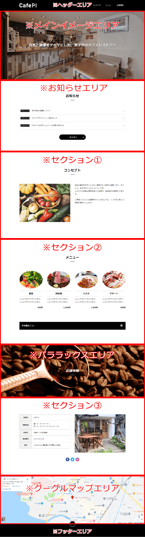 ホームページに記載する、会社(店舗)情報を紹介するセクションです。